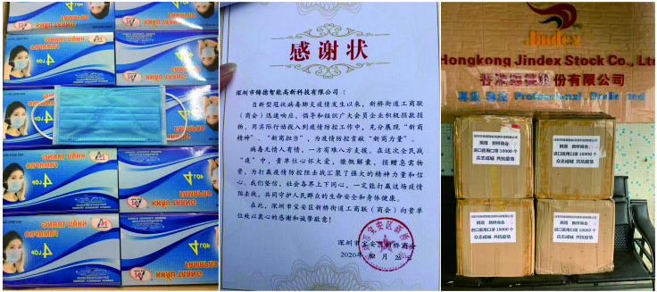 開年以來,錦德公司積極配合政府工作,積極響應(yīng)政府號令,深圳市錦德智能高新科技有限公司以柔性材料切割提供完整解決方案的產(chǎn)品研發(fā)及銷售,公司總經(jīng)理劉明軍先生表示:這個新型冠狀病毒肺炎出現(xiàn)的時候,我第一時間想到是我們應(yīng)該為社會做些事情。由于現(xiàn)在是在特殊時期,國內(nèi)口罩貨源緊張,立刻聯(lián)系國際友人,從國外緊急采購近萬個越南進(jìn)口醫(yī)用口罩,援助給新橋商會及新橋街道辦,為新橋街道的疫情防控工作助力,以實(shí)際行動踐行企業(yè)家的社會責(zé)任與擔(dān)當(dāng),盡微薄之力!