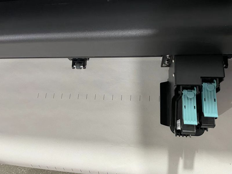對調(diào)兩個墨盒的位置,檢查是否同一個墨盒的位置不出墨,如果是同一個位置不出墨則可能是側(cè)板/背板/短排線問題,如果不是同一個位置不出墨則更換新墨盒